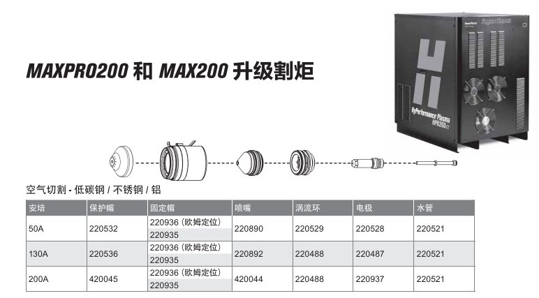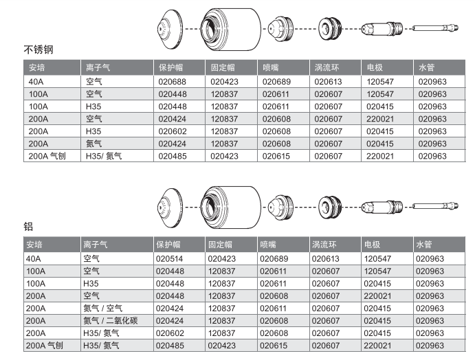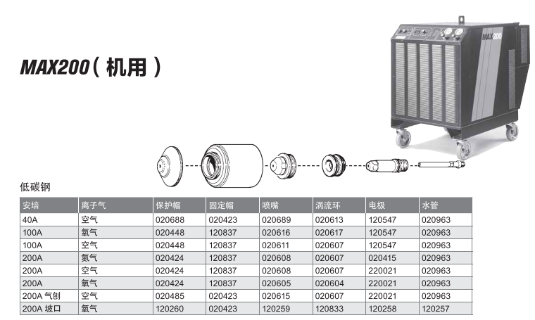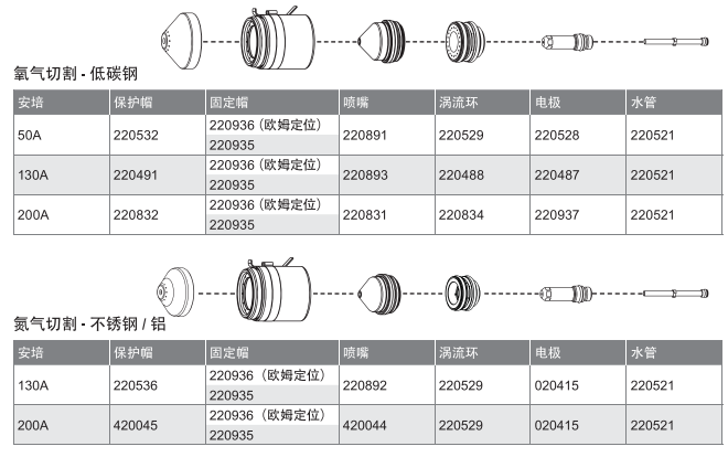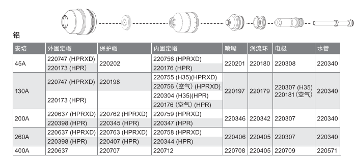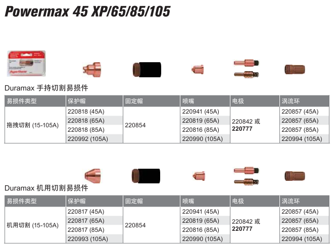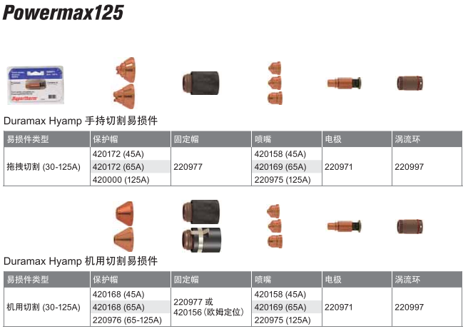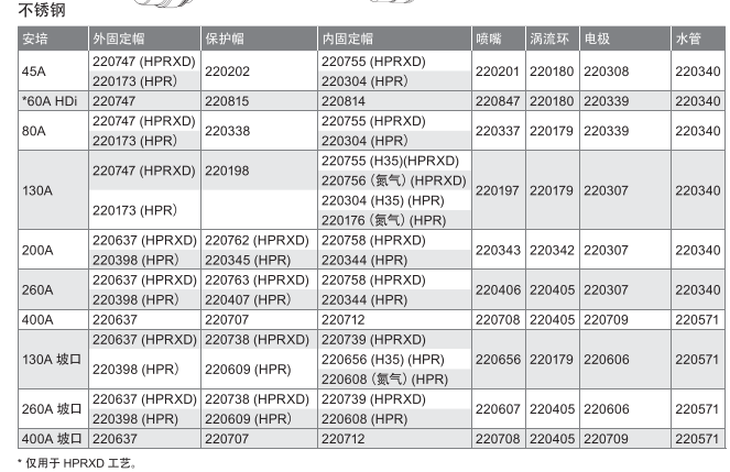 保護(hù)帽壽命短,和電極、噴嘴使用搭配消耗比例高
